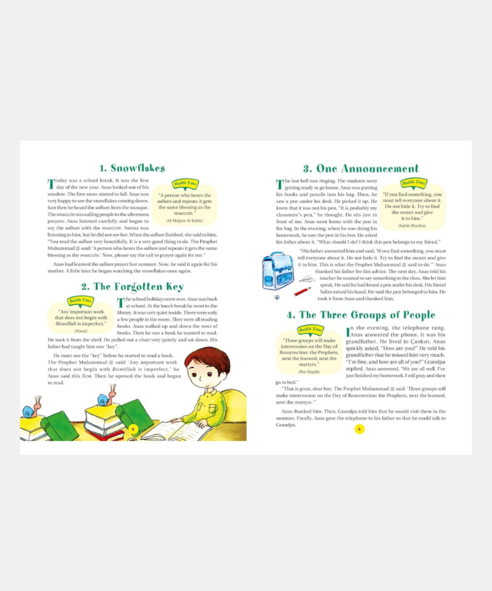 365 HADITH WITH STORIES This book, with its simple yet profound hadith and stories, set in the circumstances of our daily existence, expresses the joy and challenges of life. Reading these hadith and stories, children will come to know how ordinary incidents and day to day activities can be seen and better understood in the light of the sayings of the Prophet Muhammad.