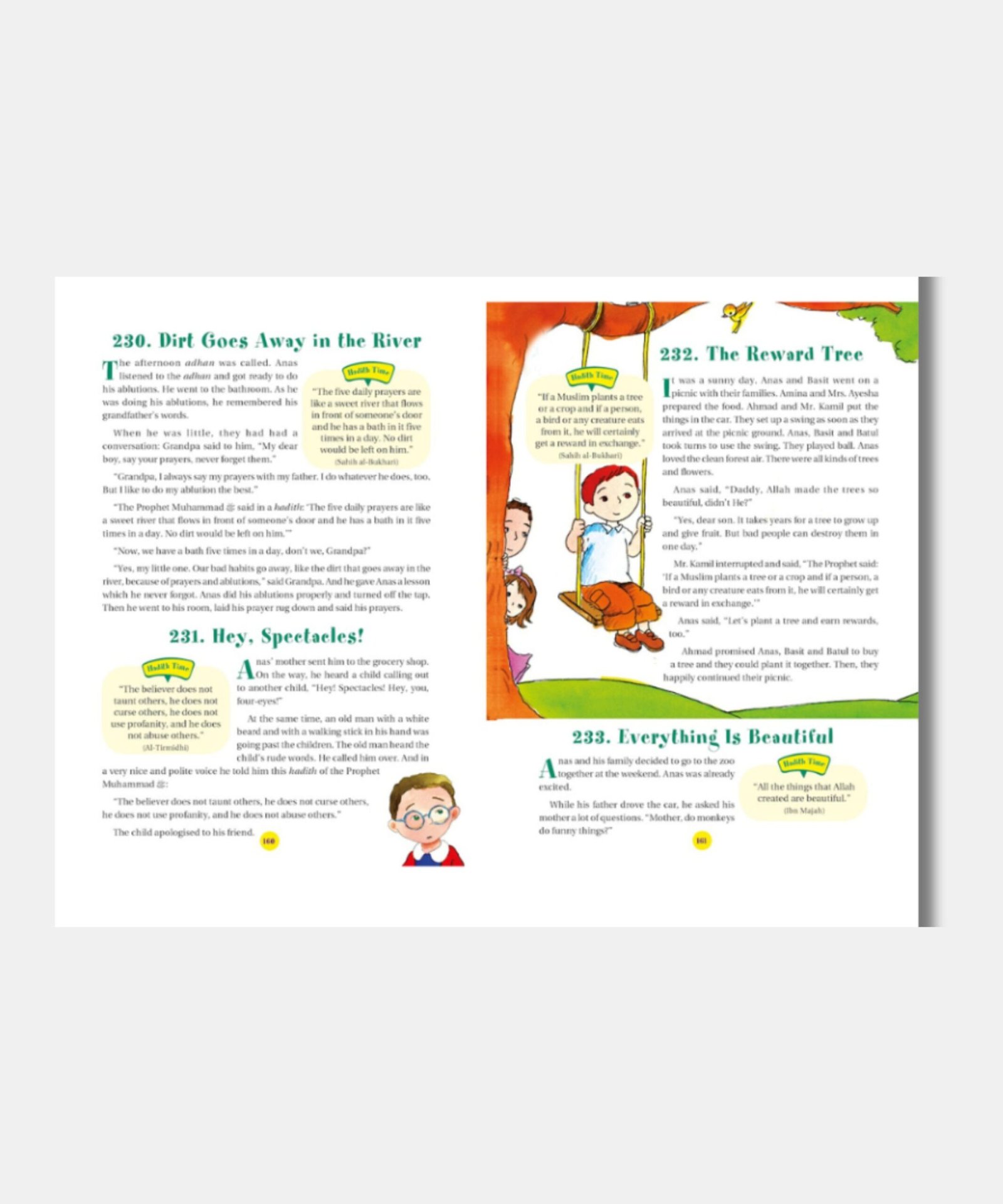 365 Hadith with Stories, This book, with its simple yet profound hadith and stories, set in the circumstances of our daily existence, expresses the joy and challenges of life. Reading these hadith and stories, children will come to know how ordinary incidents and day to day activities can be seen. And better understood in the light of the sayings of the Prophet Muhammad. These charming stories and heart-warming sayings of the Prophet, enlivened by stunning and colorful illustrations. Will become a wonderful accompaniment for children. On their path to understanding the life and message of the Prophet Muhammad, to appreciating the glory and kindness of Allah, and will bring them closer to their Prophet and Creator.